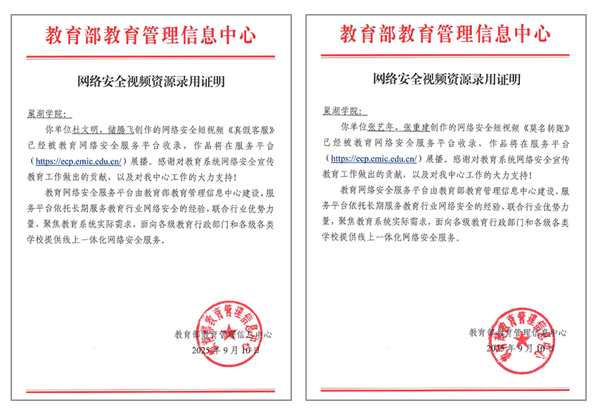 • 巢湖學院兩部網絡安全教育作品獲教育部教育管理信息中心錄用